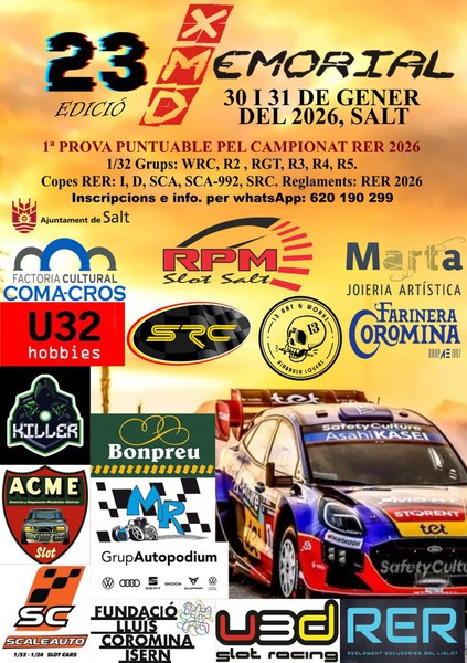 Rpm Slot Salt en representación de l´Escola l´Entorn de Porqueres, campeones de las 12h de Banyoles Slot por la marató de Tv3. Se disputaron con las carrocerías del mítico Ford GT40 del fabricante NSR, y las decoraciones fueron seleccionadas a través de un concurso escolar donde los alumnos de la provincia debían mostrar sus diseños, el encargado de plasmar dichos diseños en las carrocerías fue el también miembro de la escudería Rafa Sanchez. Los chasis realizados en 3D eran entregados a sorteo por la organización para garantizar la máxima igualdad. Si quieréis saber más de este y otros campeonatos organizados en Banyoles: www.banyolesslot.com