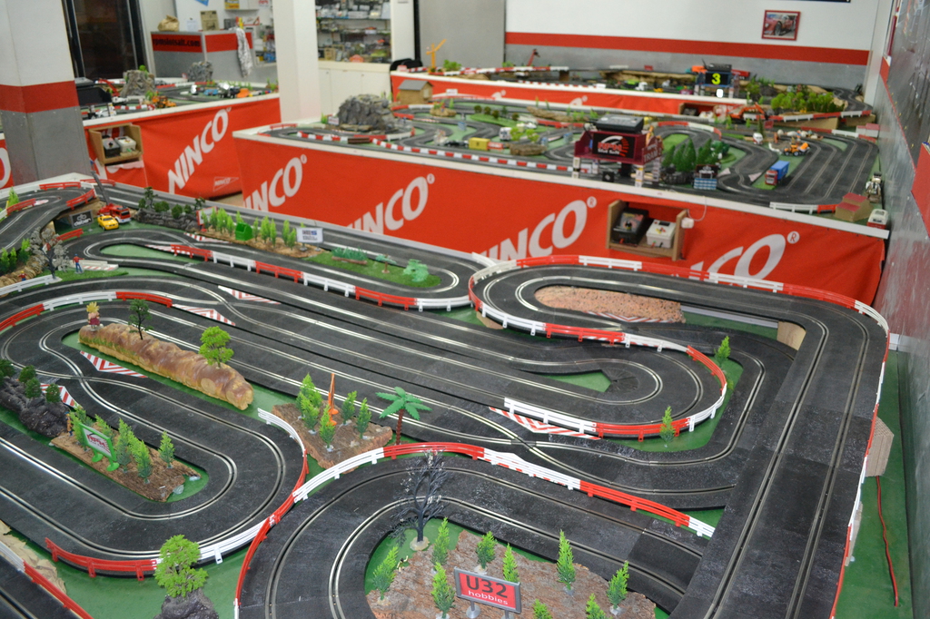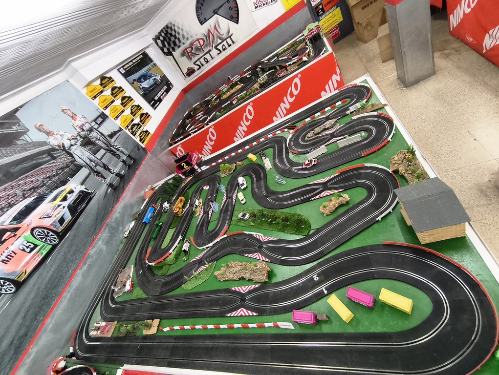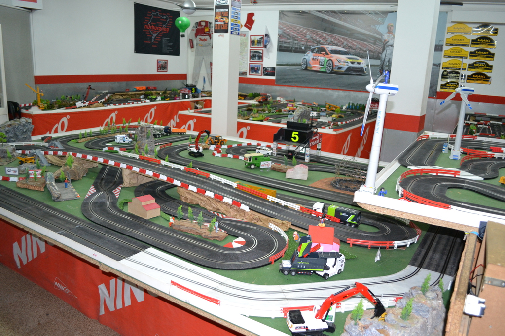 Actualmente disponemos de un humilde local de unos 100m, tenemos el espacio aprovechado al máximo, disponemos de 5 tramos Ninco, con contadores Csl inalámbricos y fuentes de alimentación Ds de 3A. En el organizamos carreras de 1/32 y 1/24, los jueves,viernes y sabados. Abrimos miercoles de 19h a 22h. Tenemos una pequeña vitrina con artículos de muestra. También organizamos competiciones para grupos, eventos, empresas, aniversarios.......